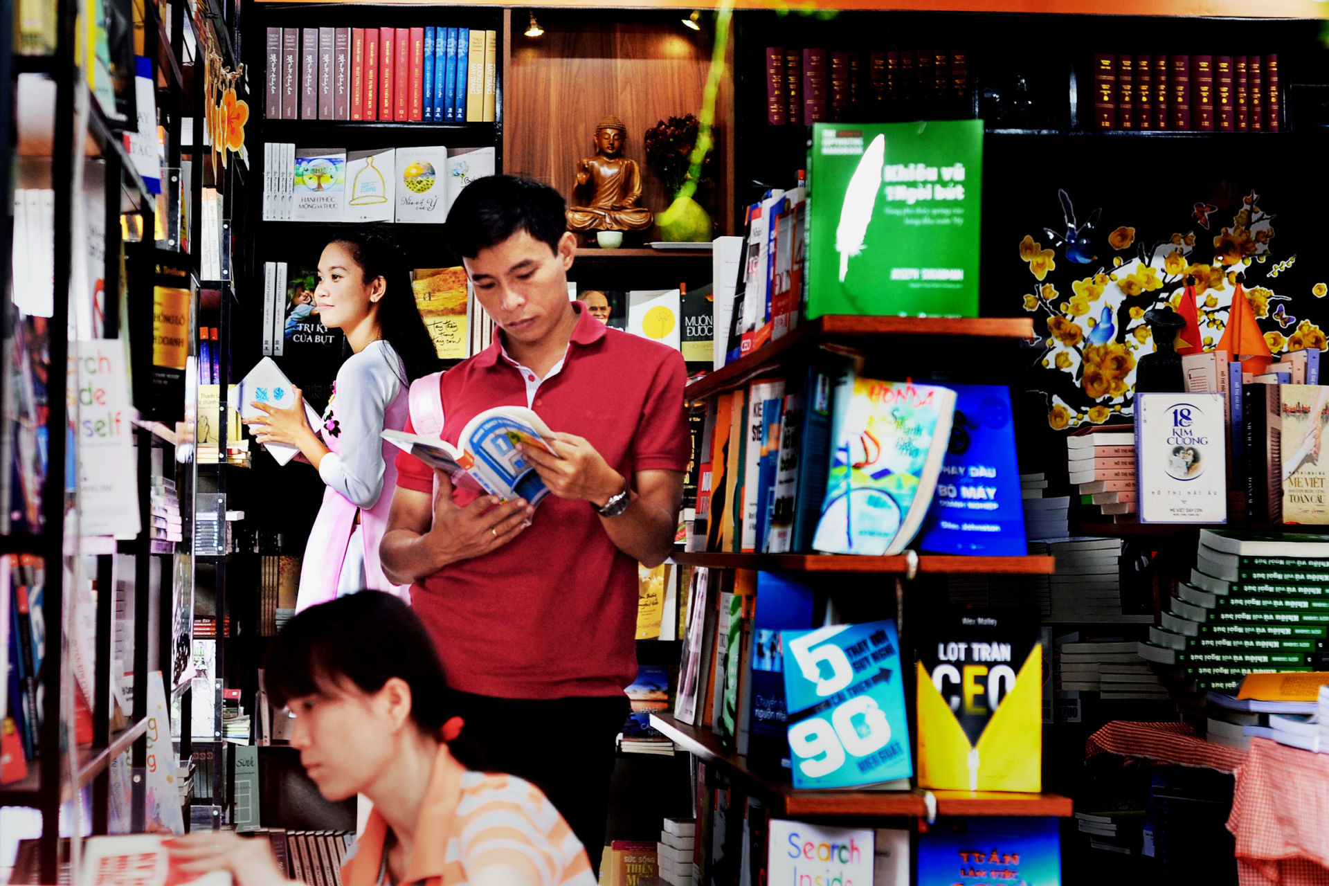 Thu trên đường sách Saigon. (Hình: Nguyễn Vĩnh Nguyên)