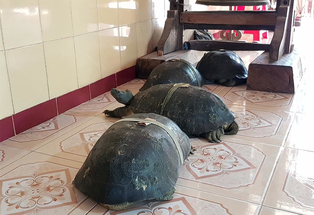 Cụ rùa 100 tuổi ăn chay, nghe kinh Phật trong chùa ở miền Tây, VN