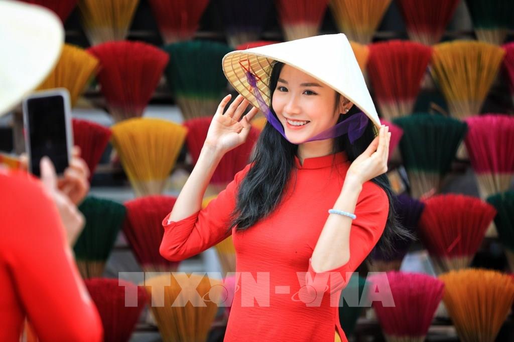 Khách du lịch đến Thủy Xuân đều thích thú chụp hình giữa không gian đa sắc màu. Ảnh: Thành Đạt - TTXVN