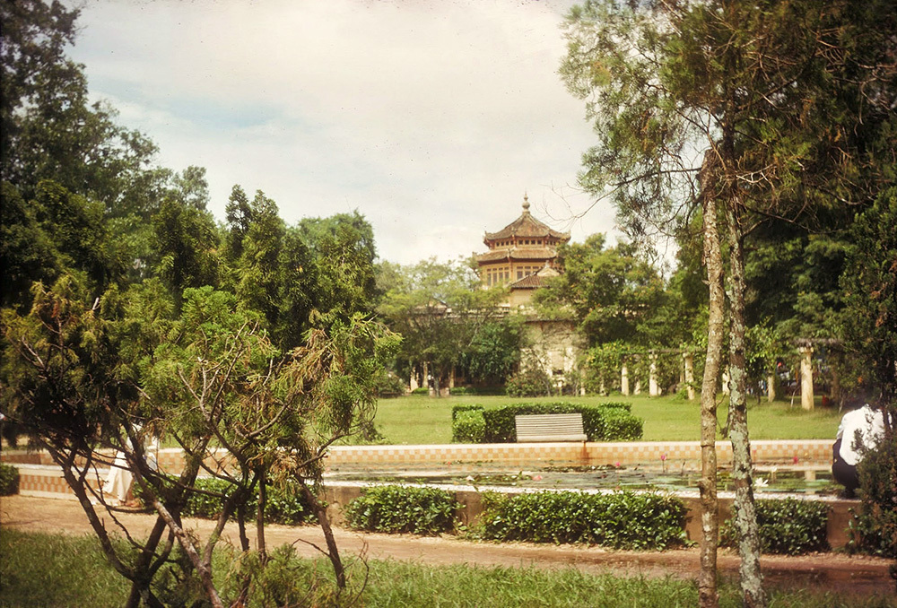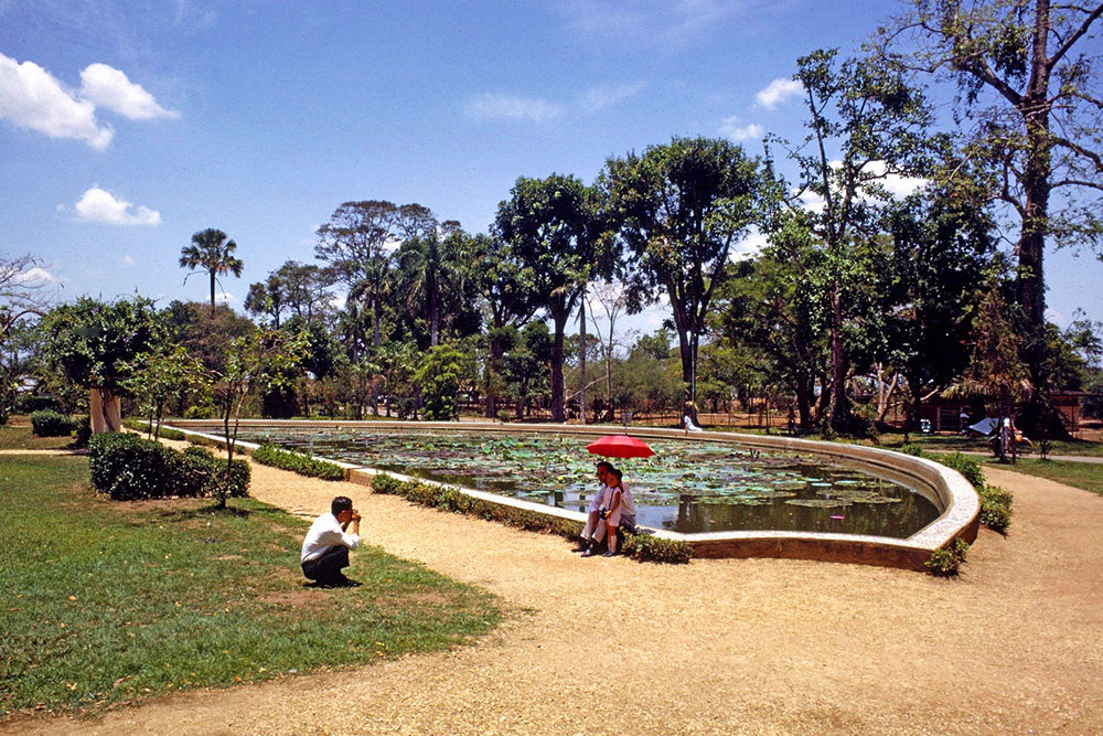 Ảnh chụp vào thập niên 1930. Góc dưới bên phải là Viện Bảo Tàng. Cạnh dưới hình là khu vực Thảo Cầm Viên. Đường dọc bên phải hình (dưới cánh máy bay) là đại lộ Norodom.