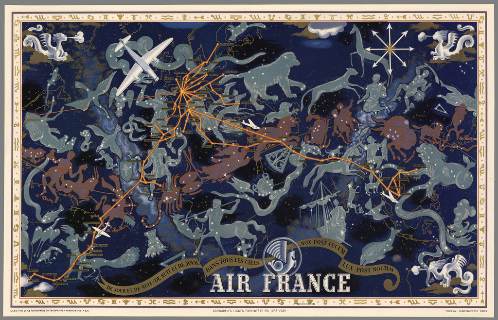 Poster của Air France năm 1938 với thông điệp “Air France đêm và ngày trên khắp các bầu trời”. Khi Air Vietnam thành lập, Air France góp một phần vốn khá lớn.