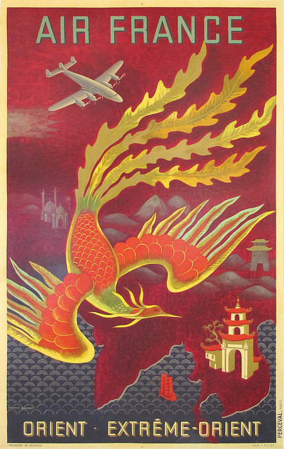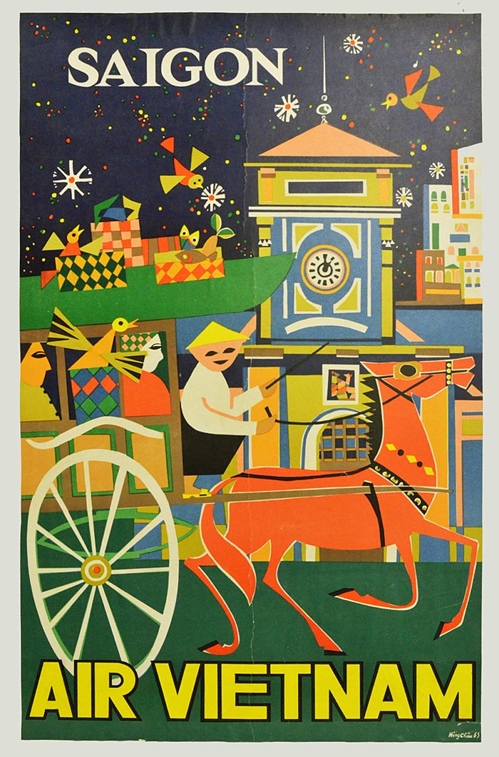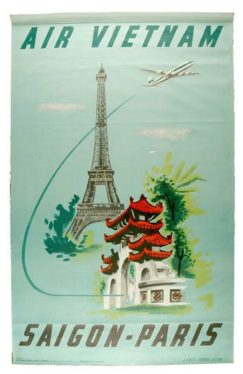 Poster quảng cáo cho đường bay Sài Gòn – Paris và đường bay đến Hà Nội của Air Vietnam – hãng hàng không Việt Nam đầu tiên trong lịch sử. Air Vietnam, hay Việt Nam Hàng không, được Quốc trưởng Bảo Đại cho thành lập ngày 8/6/1951, thời điểm Việt Nam là một quốc gia thuộc Liên hiệp Pháp.